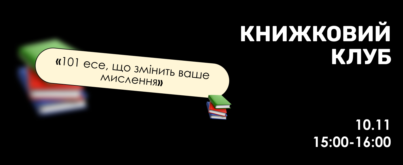 На зустрічі будемо обговорювати "101 Essays That Will Change the Way You Think" — популярну книгу Бріанни Віст, яка змушує замислитися над важливими питаннями про себе, оточення та життєві цілі. Це не просто читання — це обмін ідеями, думками, досвідом